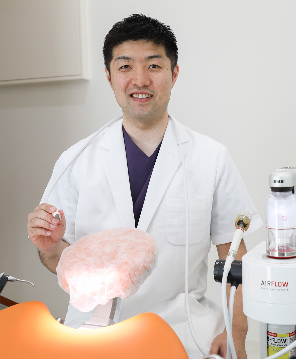 当クリニックで導入しているスイス製エアフローは、特殊な2種類の粉を状況に合わせて使い分けることで汚れ(菌や着色)を除去し、虫歯や歯周病予防に努めております。このエアフローは歯茎の中の汚れ除去にも使用できますが、歯や歯茎を傷つけないという特徴もあります。